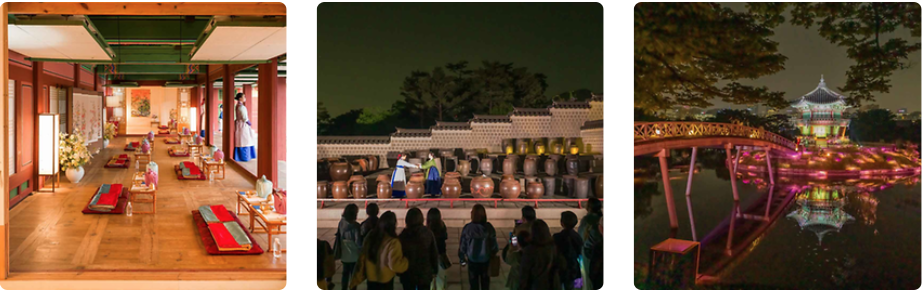 궁중음식 체험과 국악 공연이 함께 어우러진 전통 야행입니다.